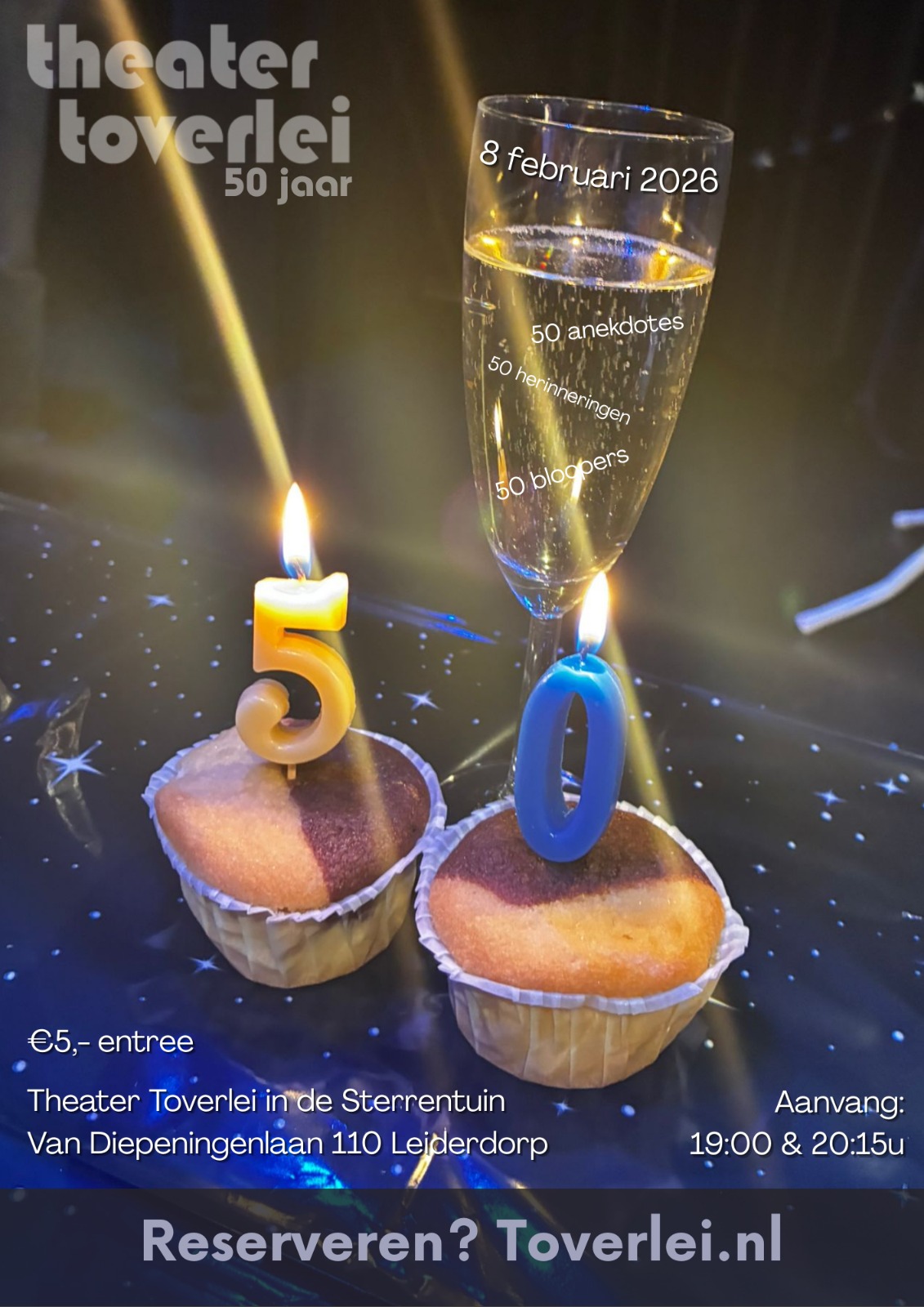 Toverlei viert haar vijftigste verjaardag. De spelers hebben goud in hun handen! Dat vraagt om iets feestelijks, iets speciaals, iets bijzonders. Maar waar moet de voorstelling over gaan? Zoveel spelers, zoveel verhalen, zoveel ideeën… Niks is bijzonder genoeg!